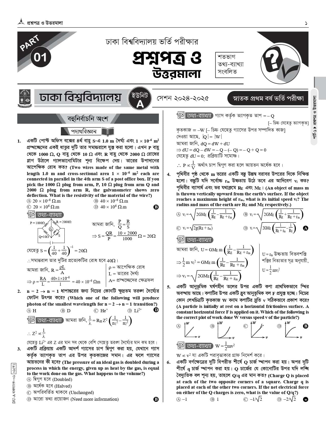 ভার্সিটি ক পদার্থবিজ্ঞান অ্যাডমিশন টেস্ট প্রশ্নব্যাংক++